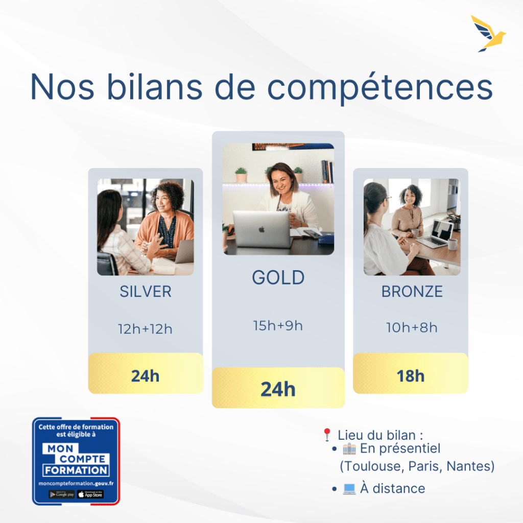 - Bilan de compétences : Clarifiez vos aspirations et validez un projet professionnel aligné avec vos talents et vos ambitions.