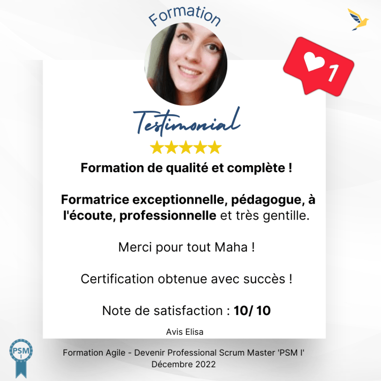 🌟 Maha : Formatrice certifiée PMP, PSM, PSPO, IQBBA & SAFe, consultante senior spécialisée en management, leadership coach certifiée & membre de la fédération internationale de coaching (ICF).